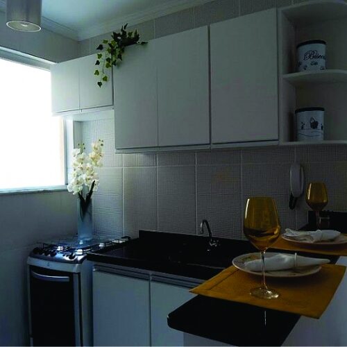 A sua fachada em textura e cerâmica, portão social, portão de garagem em metalon e pintura esmaltada. Todos os apartamentos com piso em porcelanato, banheiros e cozinhas com cerâmica até o teto.