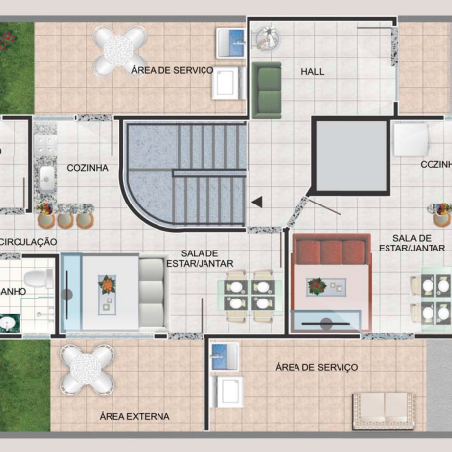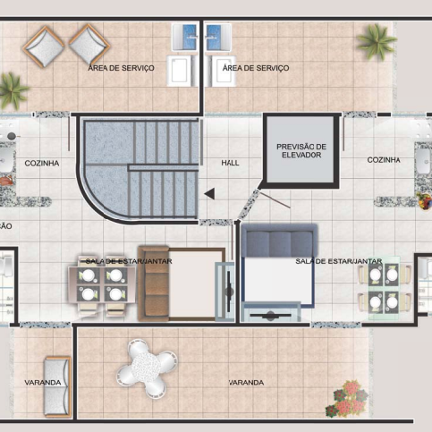 A sua fachada em textura e cerâmica, portão social, portão de garagem em metalon e pintura esmaltada. Todos os apartamentos com piso em porcelanato, banheiros e cozinhas com cerâmica até o teto.